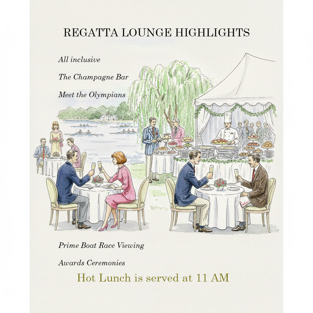 Looking for a relaxing way to spend your day at the lake? Join other VIPs, parents, grand parents & friends in the Regatta Lounge for lunch and refreshments throughout the day. The Regatta Lounge opens at 8AM with morning coffee and pastries. Later, enjoy a glass of champagne or a signature Regatta cocktail while watching the races and making new rowing friends. Special awards presentations to winning crews will take place through out the day in the lounge. Lunch will be served at 11:30AM with a delicious hot buffet & salad. Refreshments will be served throughout the day. All inclusive for $75 (before March 31, when prices increase).
